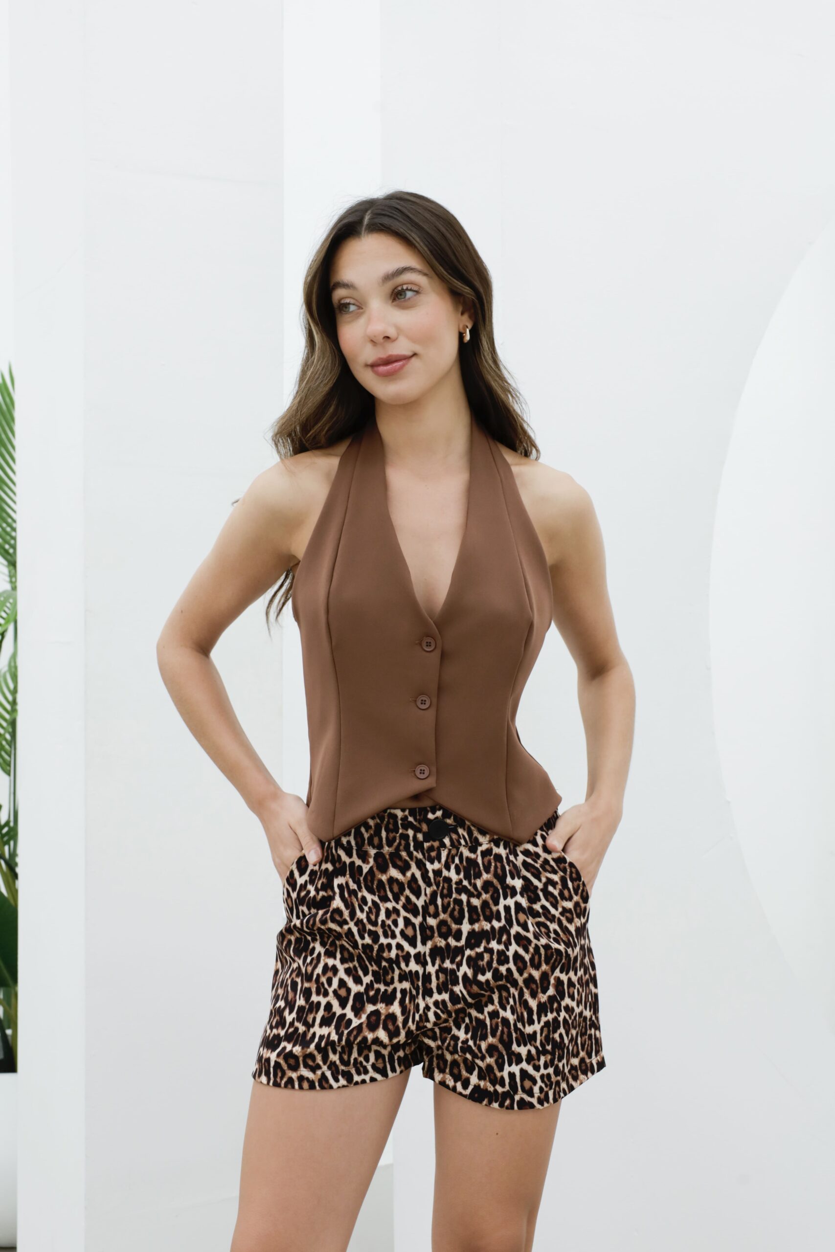 Chaleco Sastrero tipo Marilyn, con botones a tono y pinzas.